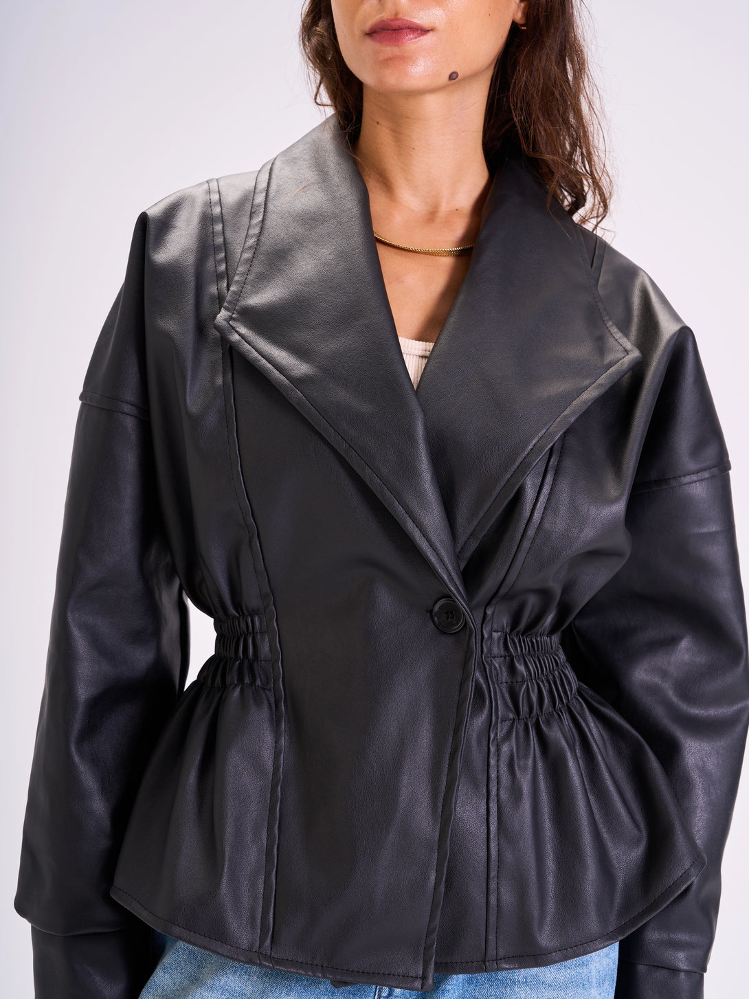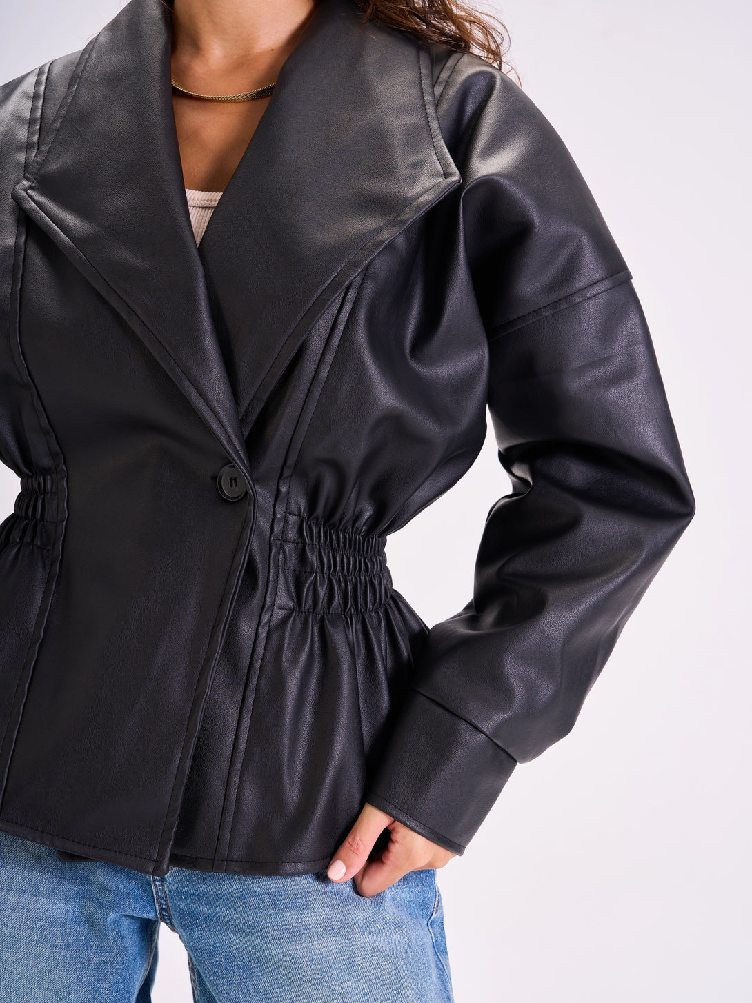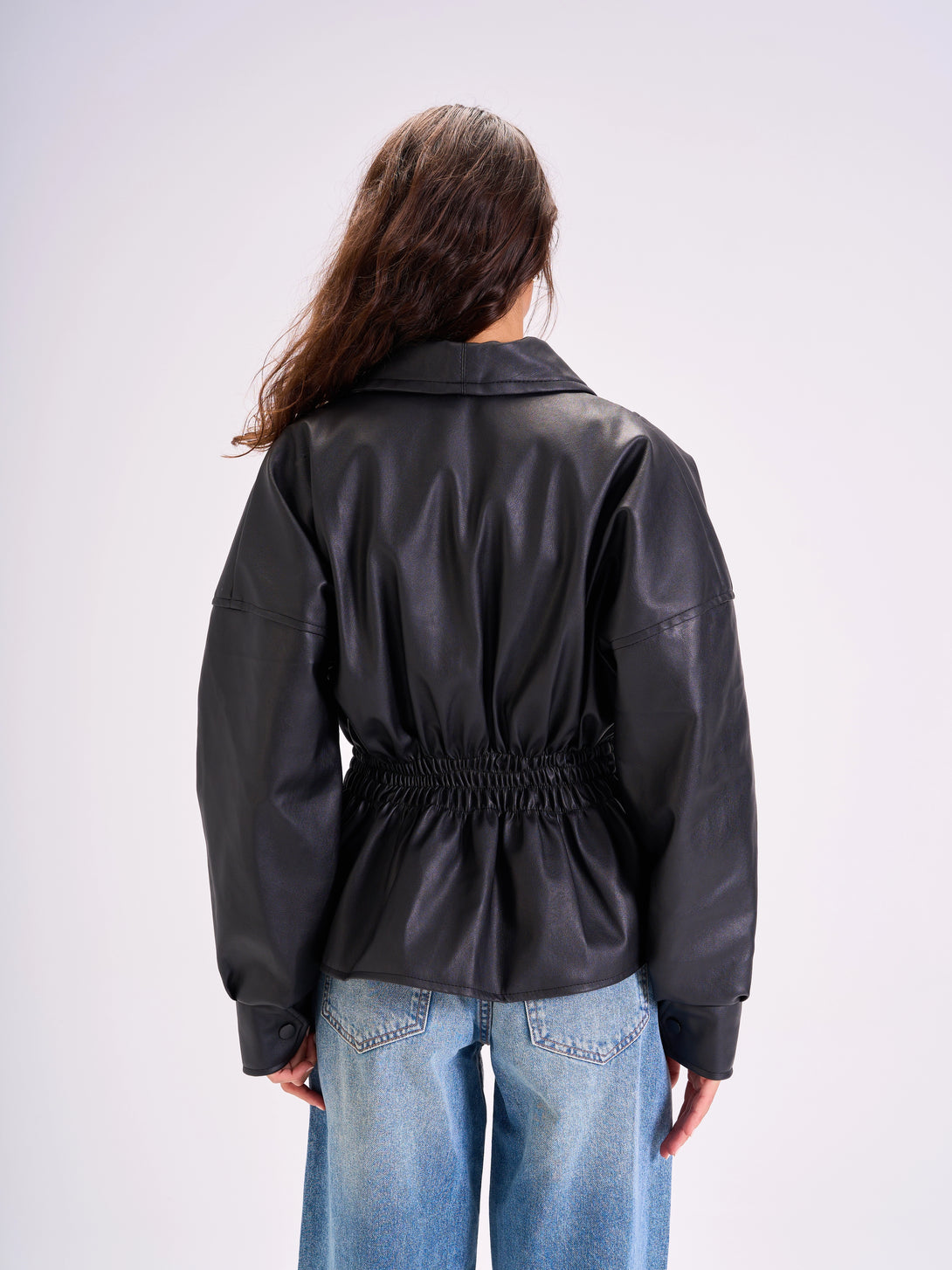 Tie-Waist Leather Jacket Black