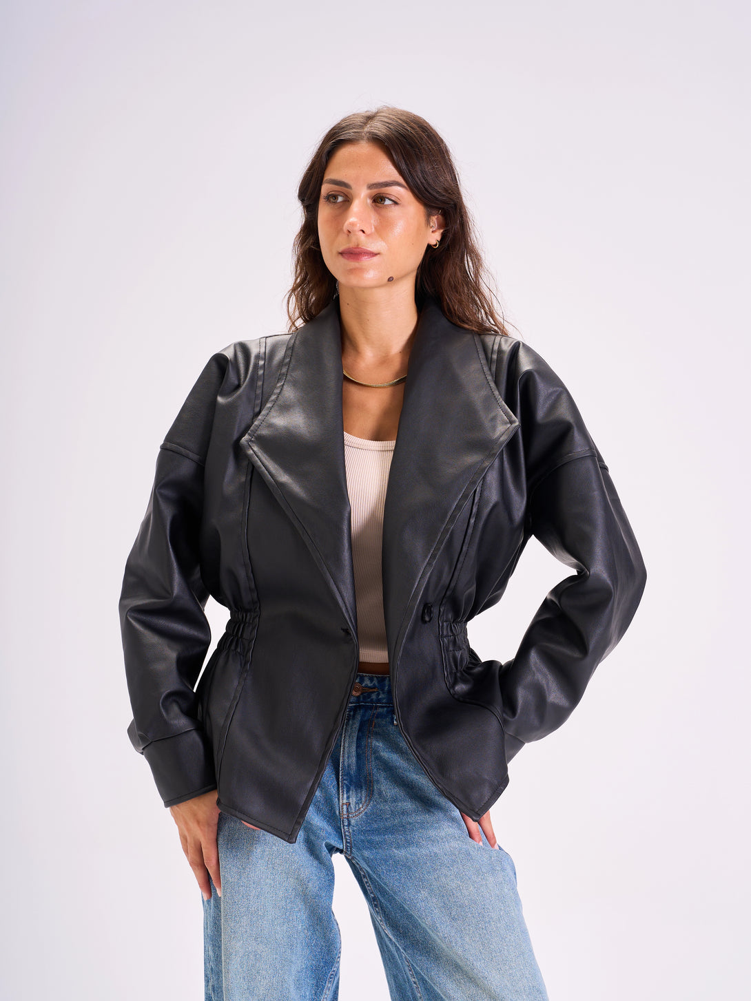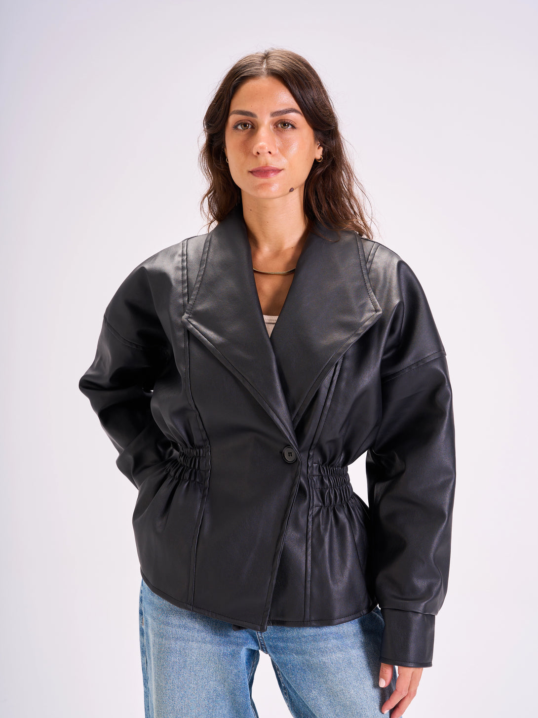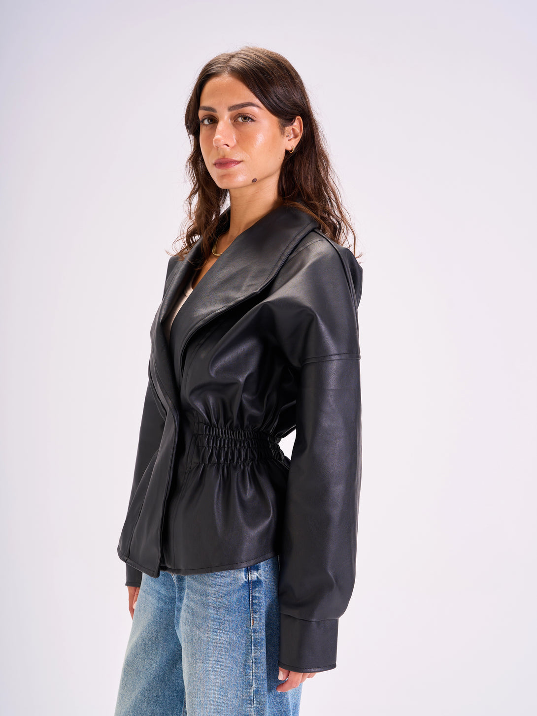 Tie-Waist Leather Jacket Black